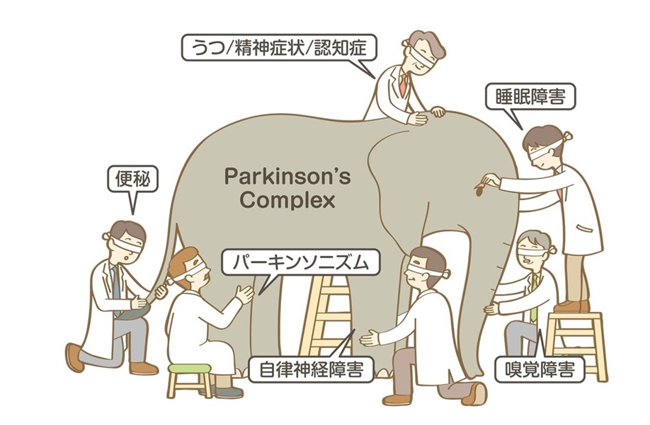 嗅球→扁桃体→大脳皮質(認知機能低下/幻視)脳幹・黒質(パーキンソニズム)